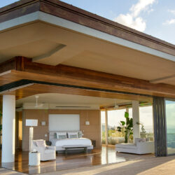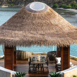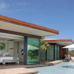 The Master Suite in The Oasis Estate is a real showstopper, complete with retracting glass walls, 270-degree views, a spacious living area and a stunning outdoor bath and shower looking out to sea. The vast wraparound private deck is adorned with loungers, a dining table and seating areas – perfect for soaking up the unspoiled views. Tucked away behind the super king-size bed you’ll find the bathroom, vanity area, walk-in wardrobe, desk, and kitchenette.
