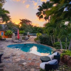 1 Paradise Lane offers a gourmet kitchen, outdoor shower, Wi-Fi, Smart TV, and rooftop deck. There is a pool which is shared with Sunset Watch villa and steps leading down to secluded Nail Bay Beach.  1 Paradise Lane Villa is the perfect place to relax, re-charge your batteries, and soak in the stunning sunsets each evening.