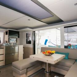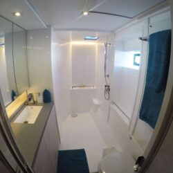 Moon Blossom is a 50’ catamaran offering 3 queen guest cabins, each with ensuite, electric head and walk in showers. She offers four lounge areas – top flybridge, front cockpit, aft cockpit and main salon all giving spectacular views of the beautiful BVI.