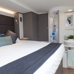 The Voyage 650 Power Cat offers six air-conditioned, deluxe King size en-suite staterooms for up to 12 guests and a large comfortable salon. The staterooms offer ample hanging closets, drawers, ambient lighting, large portholes, black out shades, in-cabin basin, and vanity. These are just a few of the superb features of this stylish yacht.