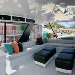 The Voyage 650 power cat offers unparalleled experience in performance power catamarans with the choice of open or fully enclosed cockpits and panoramic views of the beautiful British Virgin Islands. Apart from the luxurious staterooms, there are several areas around the boat to lounge and enjoy shade or sun, all designed to provide each guest with a relaxed and comfortable time on board. The Voyage 650 power cat has the added bonus of blue underwater lighting, so when the sun goes down you can enjoy an evening show of aquatic life.