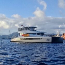 The Voyage 650 Power Catamaran is an outstanding one-of-a-kind yacht, built and designed for extreme comfort and luxury yachting. This stunning, spacious motor yacht cruises at 15 knots, providing a comfortable ride between islands in the BVI, and offers a panoramic upper deck lounge that can be fully enclosed, or opened up to the warm sea breeze.